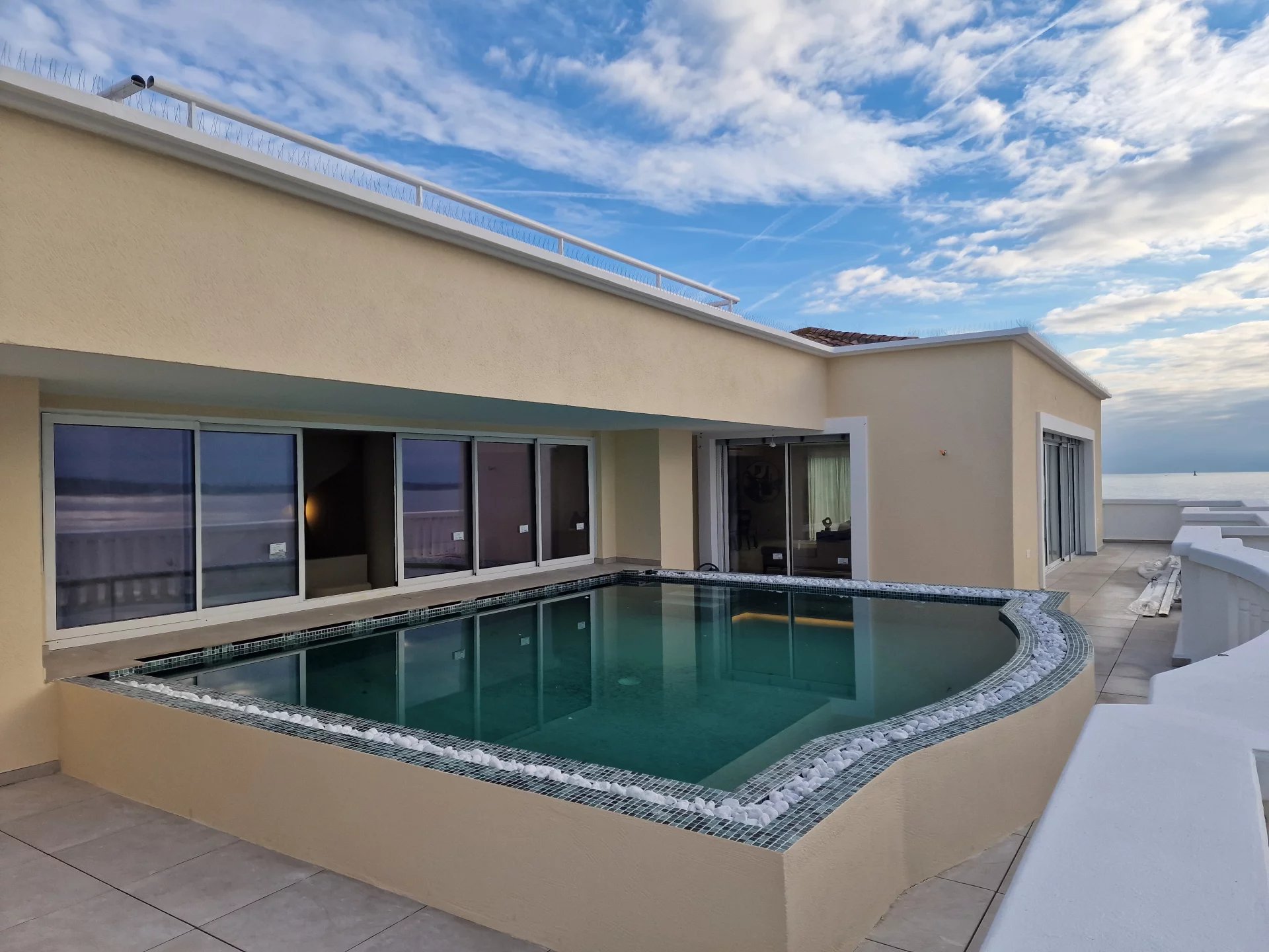 Superbe penthouse triplex de 512 m² avec piscine et vue mer à Cannes Palm Beach. Appartement d’exception offrant luxe, espace et panorama unique.