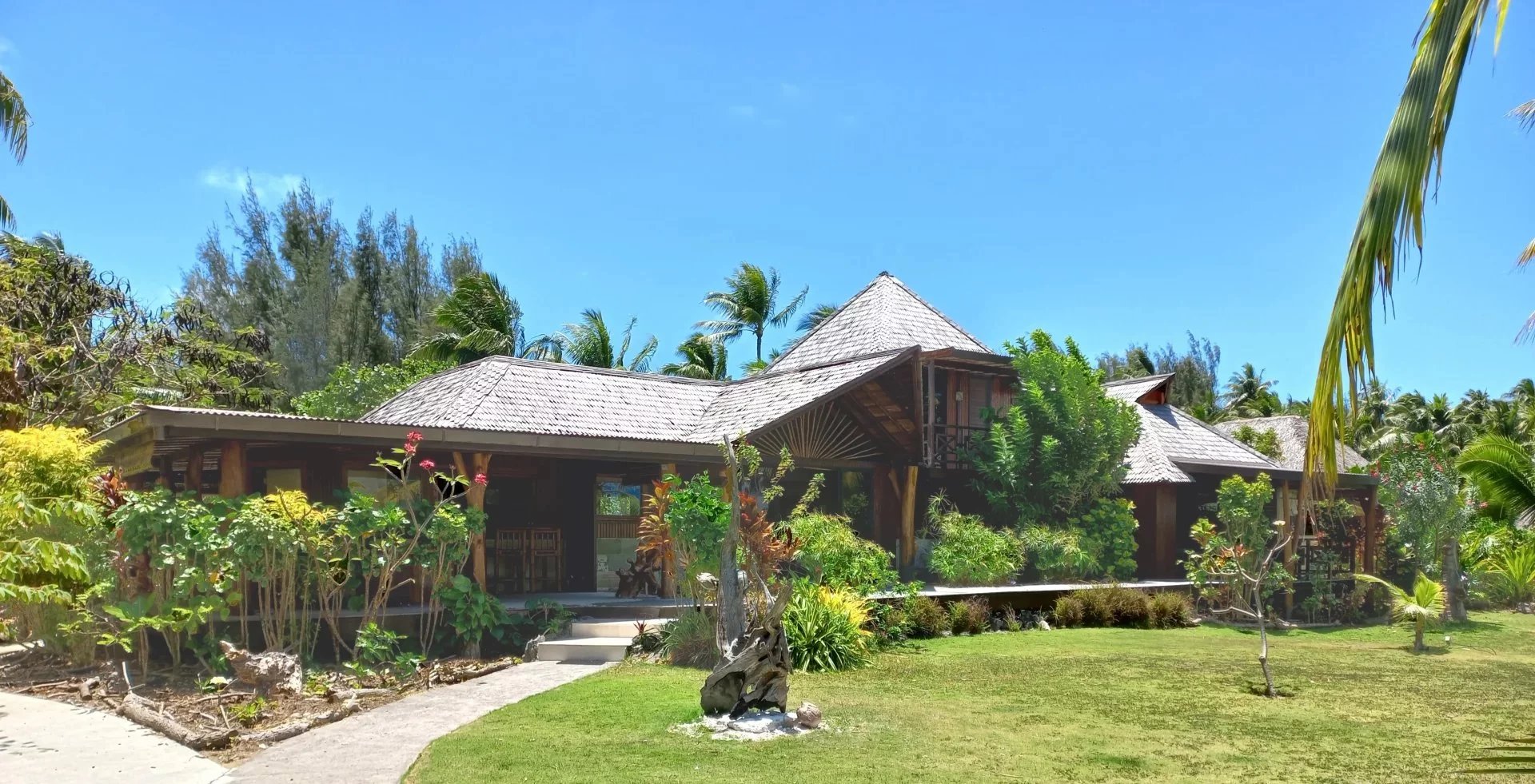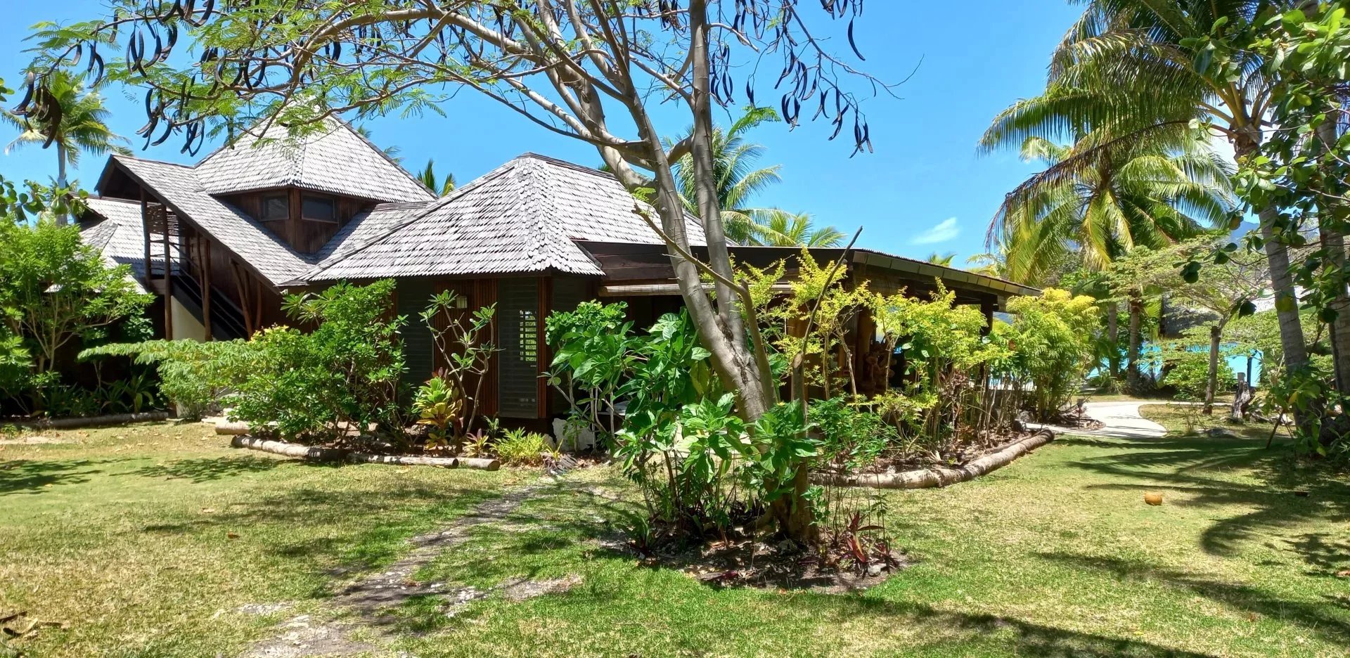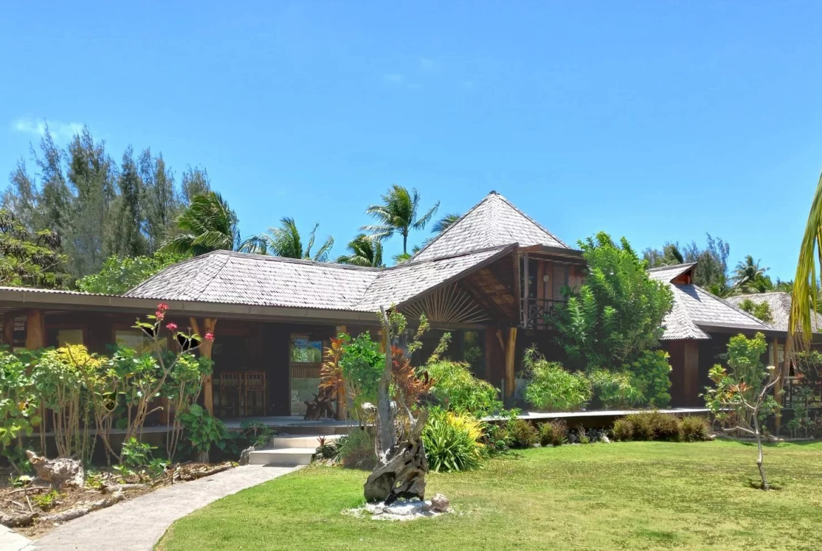 📋 CARACTÉRISTIQUES PRINCIPALES — Parcelle 1 côté lagon : 10 000 m² • Parcelle 2 côté mer : 3 410 m² • Surface totale terrain : 13 410 m² • Villa principale : 295 m² (3 chambres avec terrasses, 3 SDB, salon, cuisine, salle vidéo, cellier) • Maison du gardien : 105 m² (2 chambres, SDB, salon, cuisine ouverte, terrasse) • Maison d’invités en construction : 170 m² (1 chambre, SDB, salon, cuisine, buanderie, rangement, terrasses) • Fare pote’e : 20 m² • Dock pour bateaux • Terrain arboré : cocotiers, bananiers, papayers, citronniers • Pièces totales : 10 • Aéroport Bora Bora : 9 km • Aéroport Raiatea : 35 km • Aéroport Huahine-Fare : 77 km • Localisation : Bora Bora • Îles Sous-le-Vent • Polynésie française.