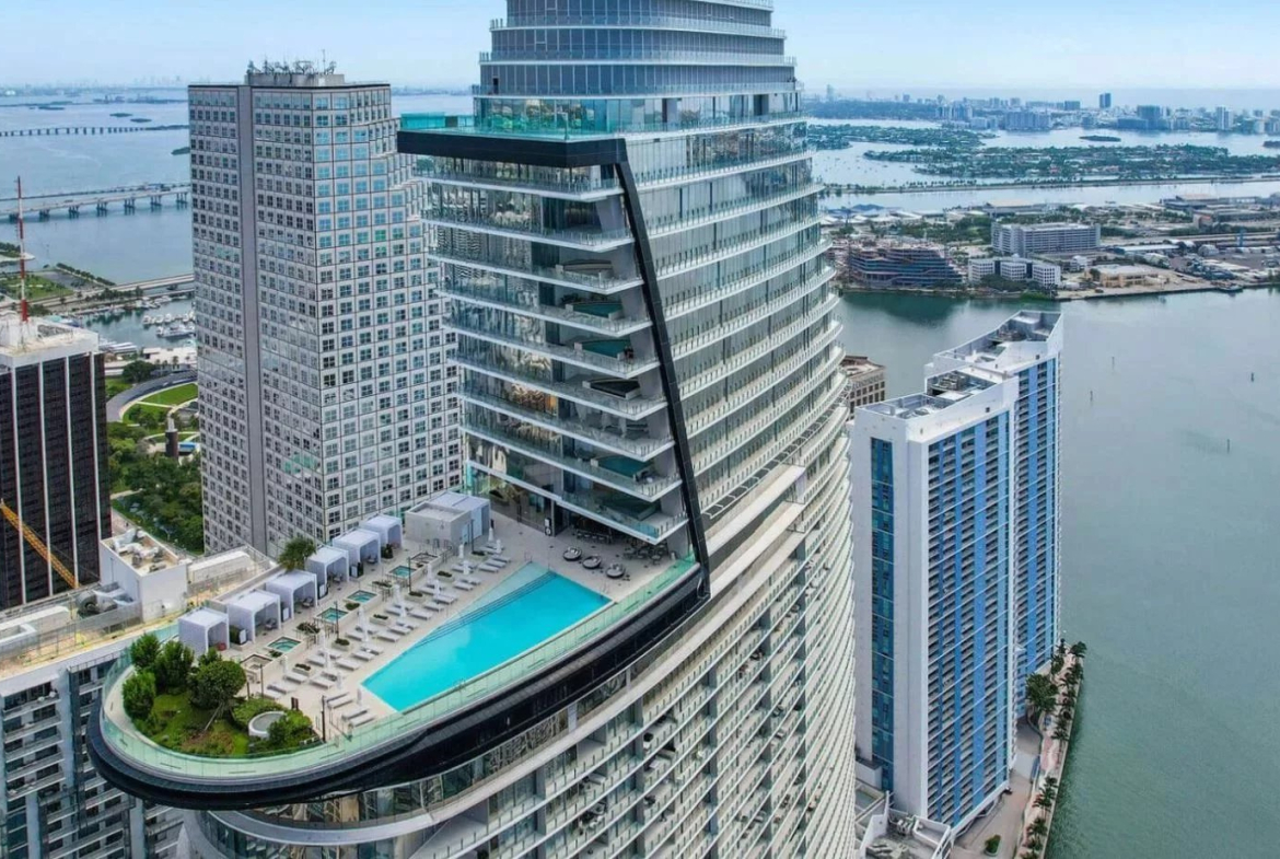 Penthouse Aston Martin Résidences à Miami, Brickell, États-Unis. 1 115 m², plain-pied, vues 360° sur la baie de Biscayne, piscine privée, garage Aston Martin. 28 600 000 USD.