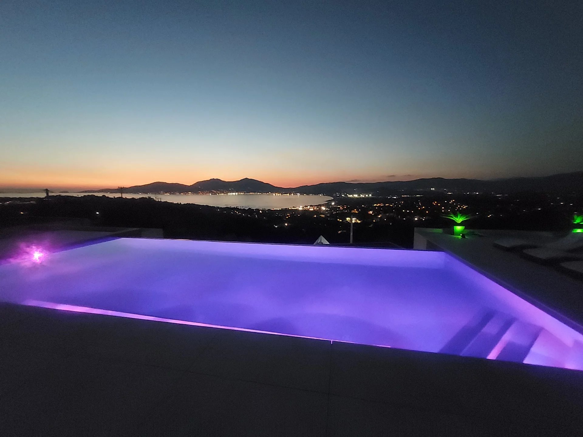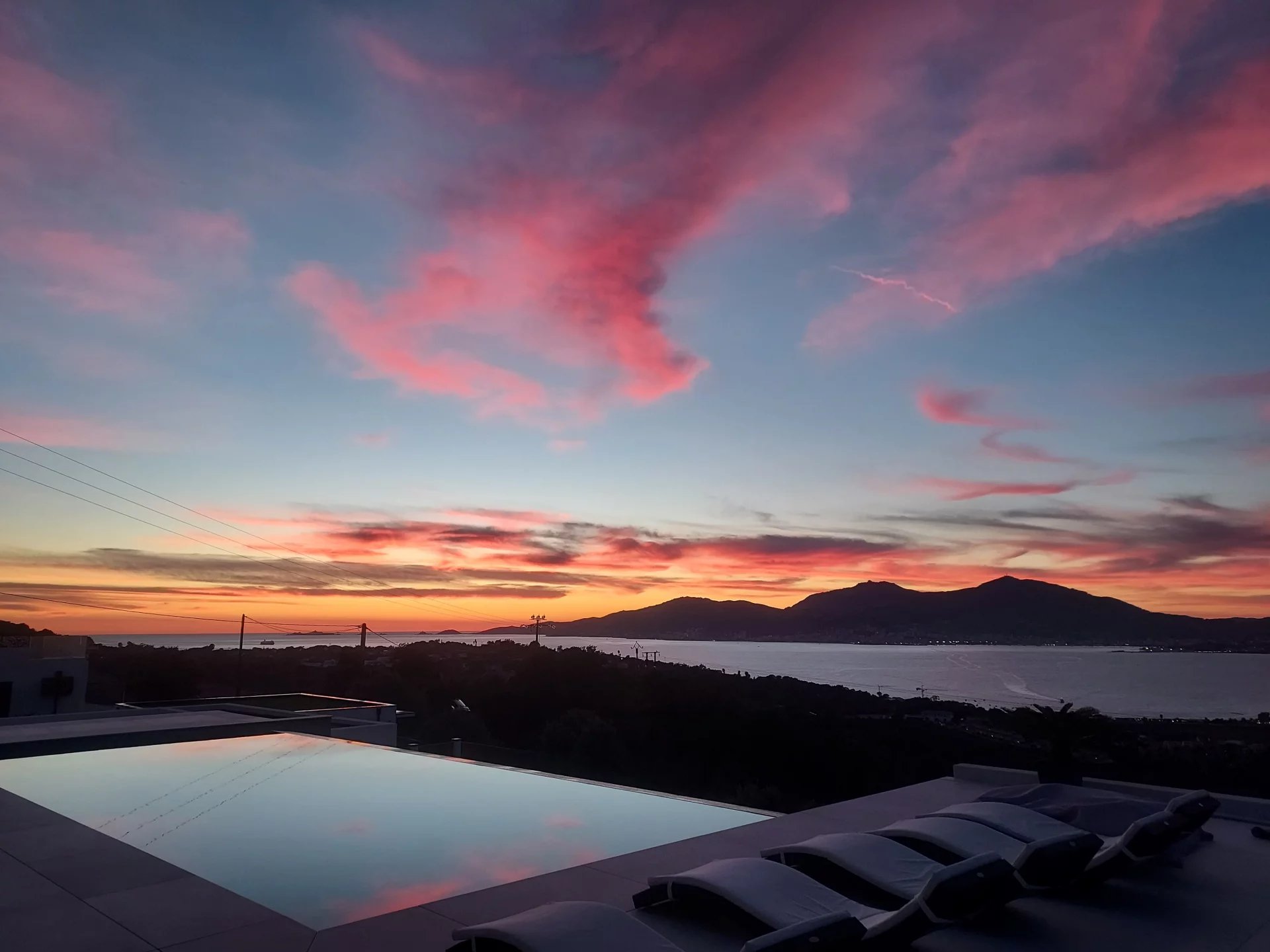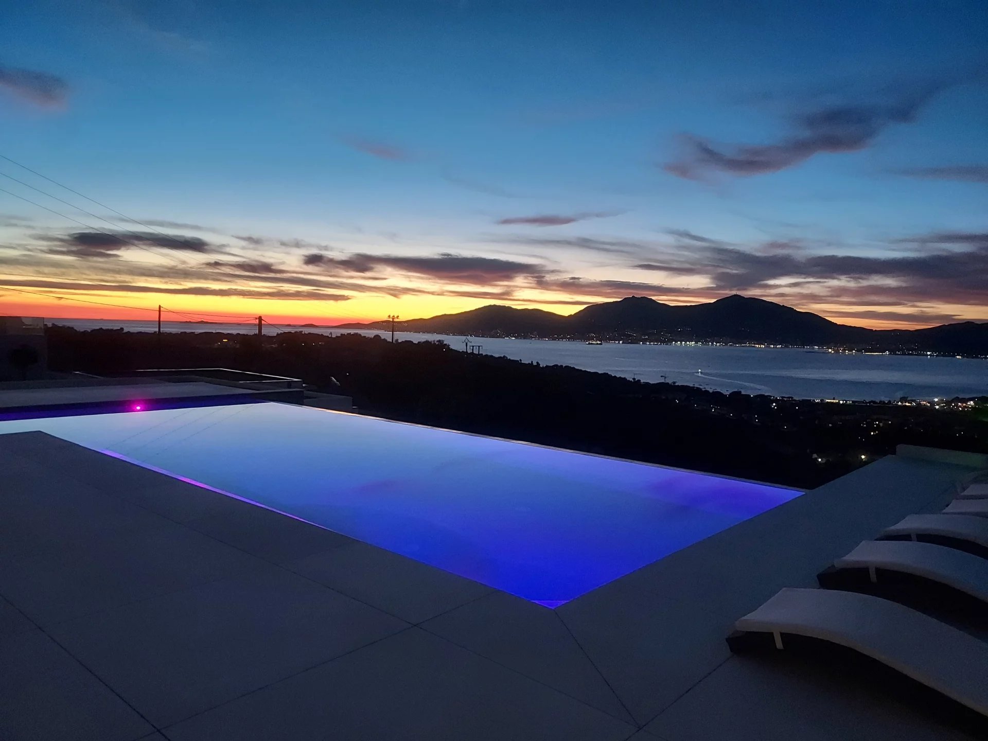 Découvrez cette propriété moderne à Porticcio, avec 2 villas contemporaines, vue mer époustouflante, 8 chambres, 2 piscines, garage pour 6 véhicules et plus. Dossier confidentiel sur demande.