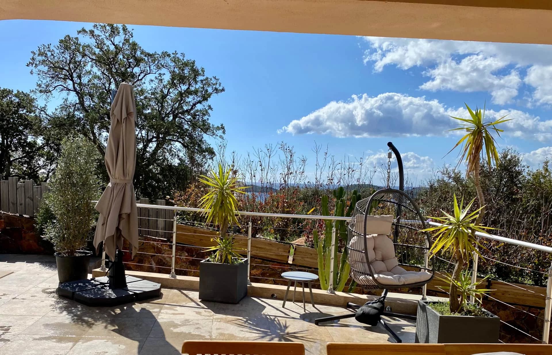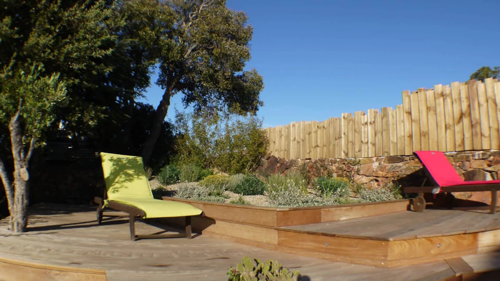 À l’extérieur, de larges terrasses en bois entourent une magnifique piscine chauffée au sel (10,5 x 4,5 m), parfaitement intégrée au jardin. Un terrain de pétanque et une végétation méditerranéenne complètent cet espace de détente.