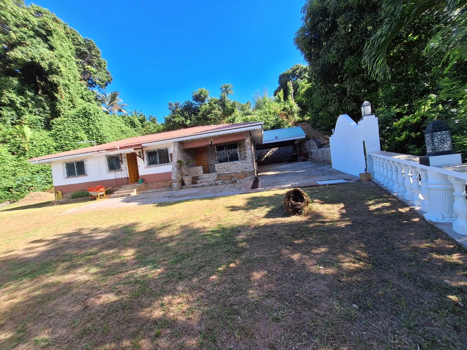 Villa à vendre à Praslin vue mer Baie Sainte-Anne. Jardin tropical 1628 m², proche plages et ferries – 750 000 €. Idéale pour résidence ou investissement.