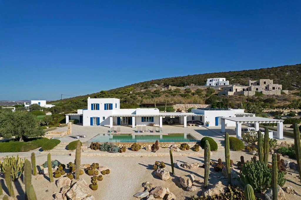 Dans le sud préservé de Paros, sur les hauteurs de Faraggas, cette propriété exclusive de 550 m² sur 8.000 m² de terrain offre une vue panoramique saisissante sur la mer Égée et les îles d’Ios, Sikinos et Folegandros.