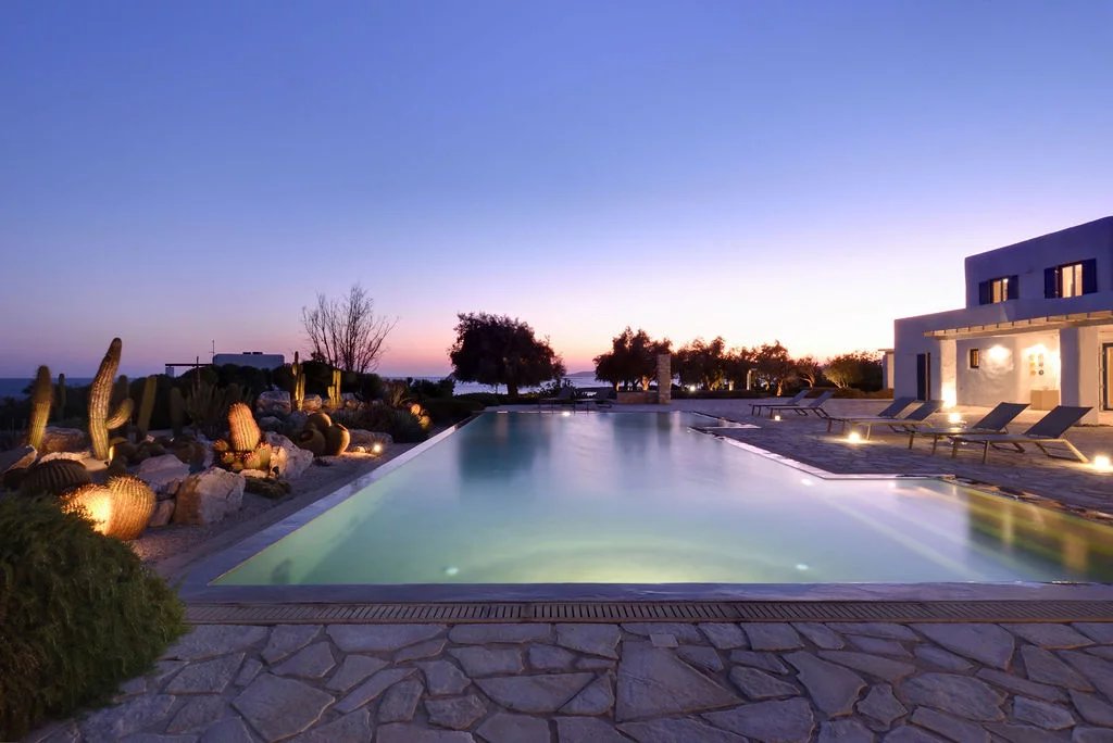 Conçue dans le respect de l’architecture cycladique, elle dégage une élégance discrète, un luxe authentique et une harmonie parfaite avec son environnement naturel.