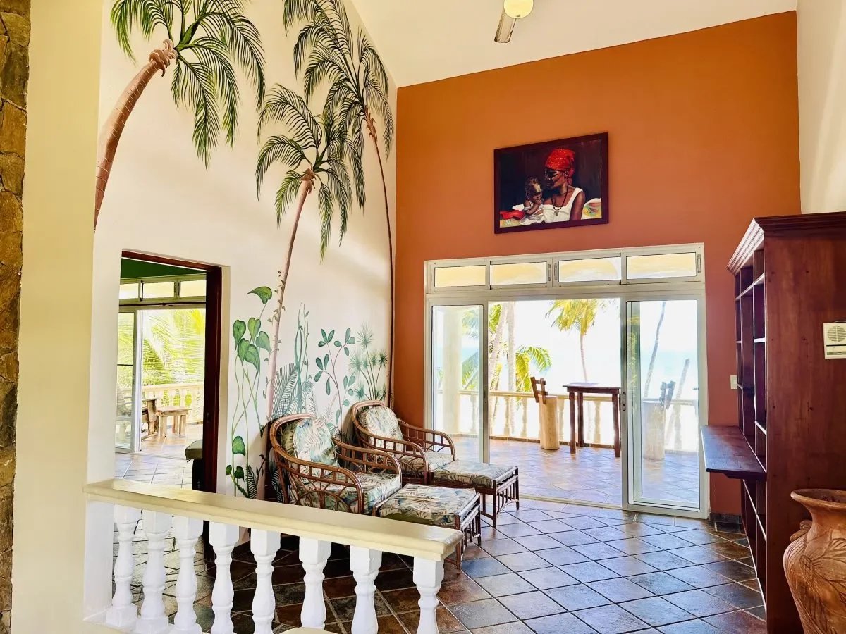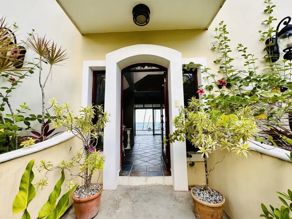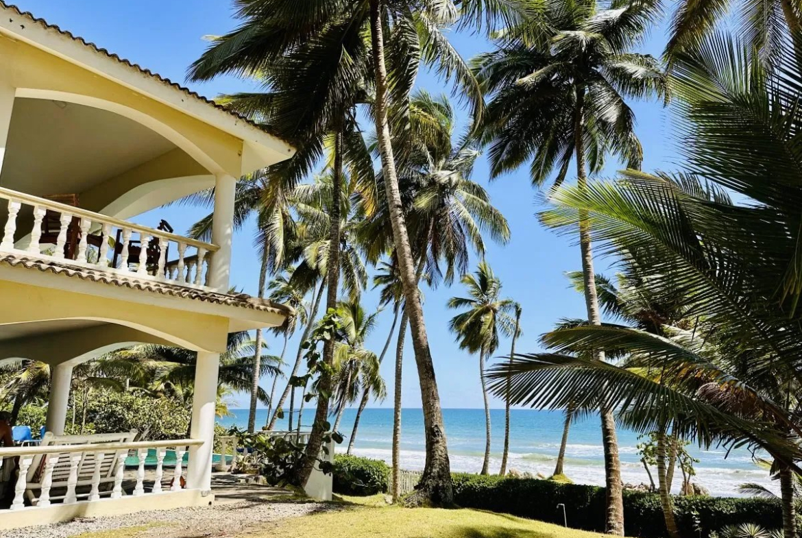 ✨ VILLA PIEDS DANS L’EAU AVEC MAISON D’AMIS — LAS CAÑAS, CÔTE NORD, RÉPUBLIQUE DOMINICAINE — Située sur la côte nord de la République dominicaine, dans le secteur recherché et paisible de Las Cañas, cette spectaculaire villa de luxe pieds dans l’eau offre un cadre de vie rare alliant intimité, nature tropicale et vue imprenable sur l’océan Atlantique. Implantée sur un vaste terrain en bord de mer de 5 655 m², la propriété se compose d’une villa principale et d’une maison d’amis indépendante, pour un total de 7 chambres et 6 salles de bains sur environ 500 m² habitables. La villa principale développe de beaux espaces de réception baignés de lumière naturelle, avec de grandes ouvertures sur terrasses et océan et des hauteurs sous plafond généreux. Plusieurs chambres bénéficient d’un accès direct à la piscine ou aux terrasses. La maison d’amis, discrètement intégrée dans l’environnement tropical, dispose de sa propre cuisine, d’un espace de vie indépendant et de deux chambres — idéale pour l’accueil de famille et amis ou une exploitation locative sans compromettre l’intimité de la villa principale. À l’extérieur : jardin en bord de mer soigneusement aménagé, piscine privative, espaces ombragés et accès direct à une plage naturelle de sable préservée et peu fréquentée.