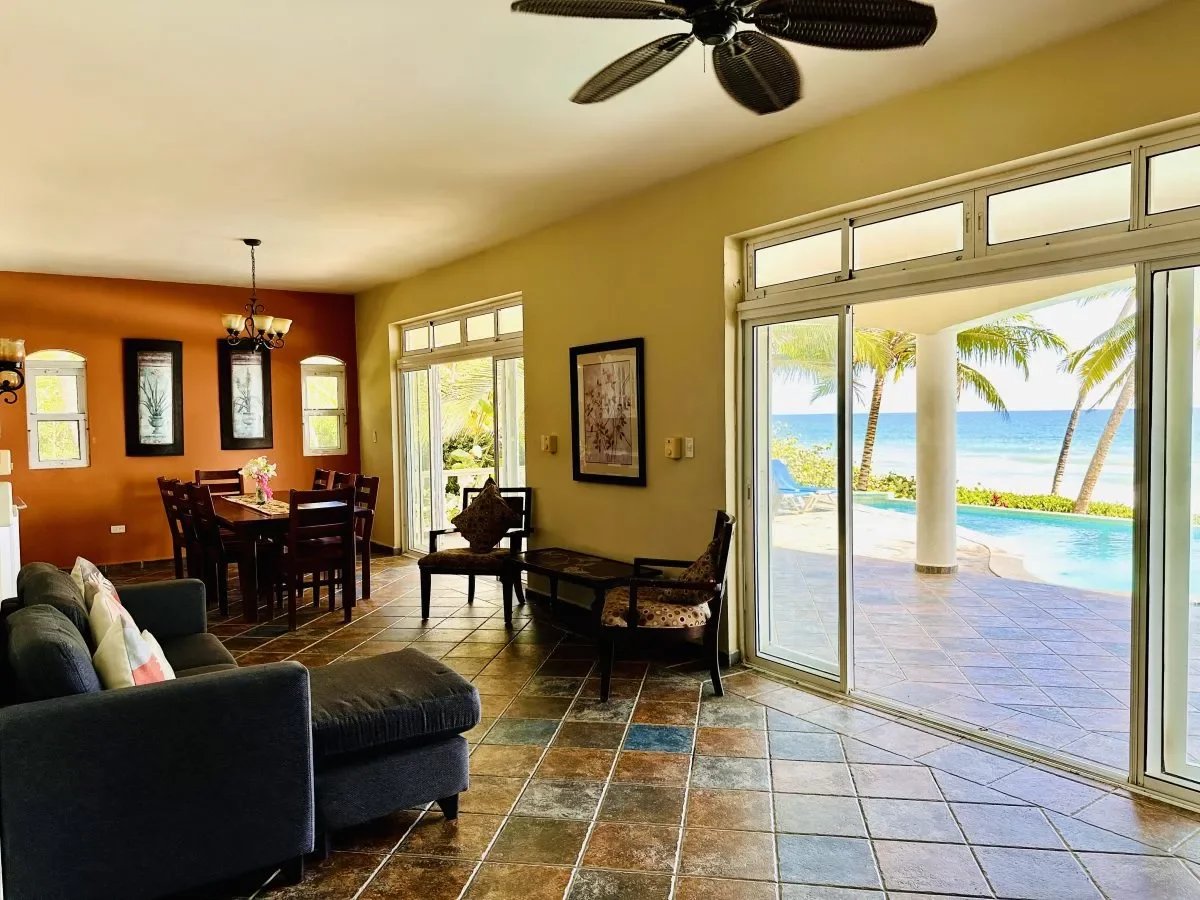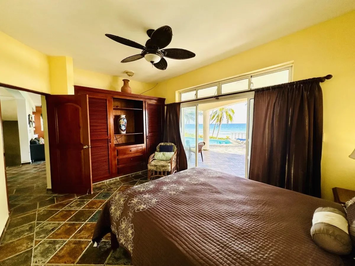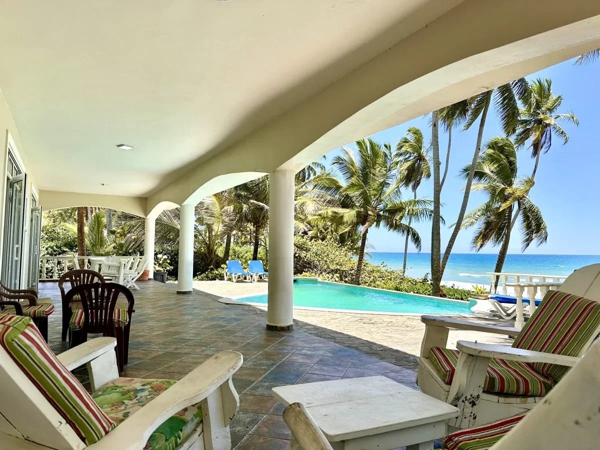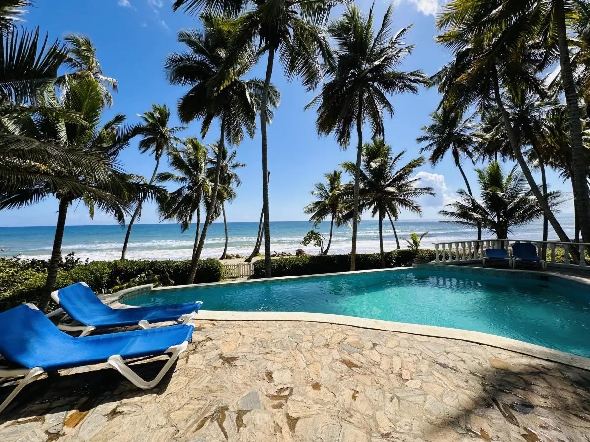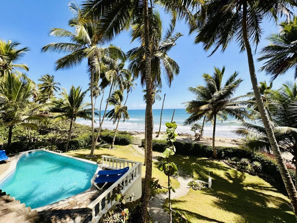 Villa pieds dans l’eau à vendre à Las Cañas, côte nord, République dominicaine. 500 m², terrain 5 655 m², 7 chambres, maison d’amis indépendante, piscine, accès plage directe.