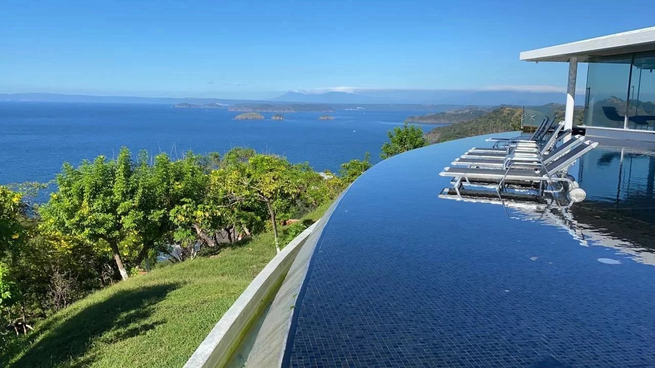 Villa de luxe 836 m² à vendre à Ocotal, Playa Flamingo, Guanacaste, Costa Rica. 5 chambres en suite, piscine à débordement vue Pacifique, terrasses panoramiques, capacité 12 personnes.
