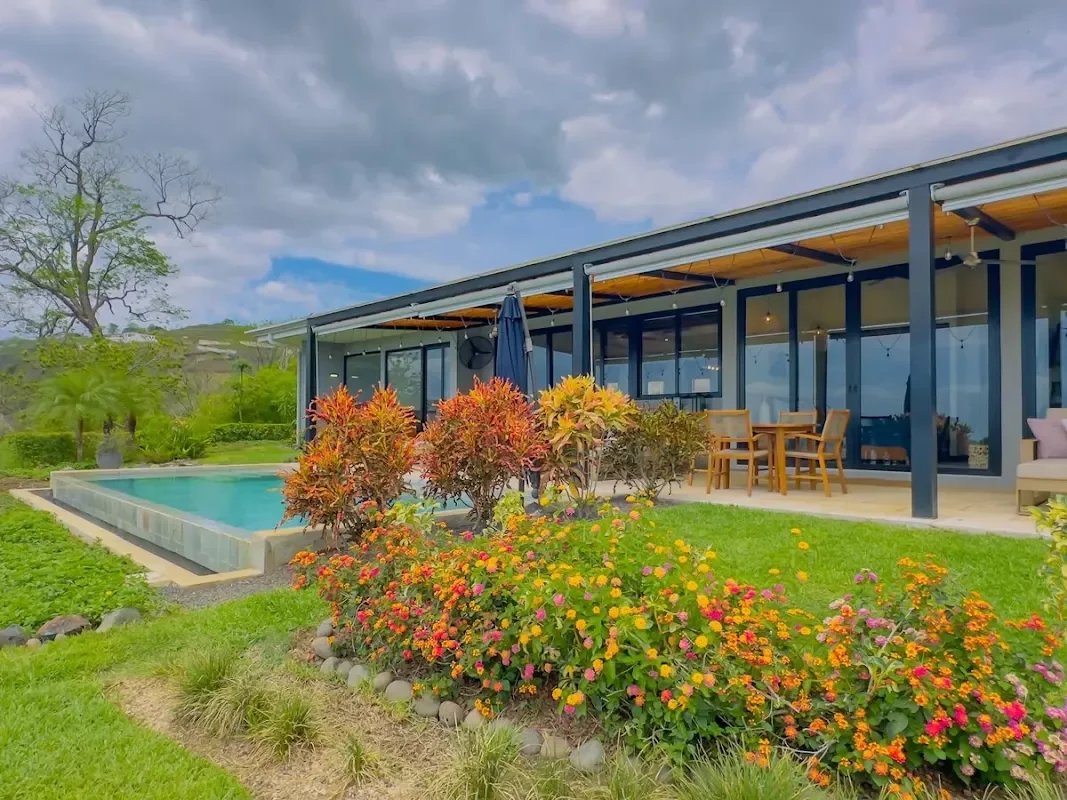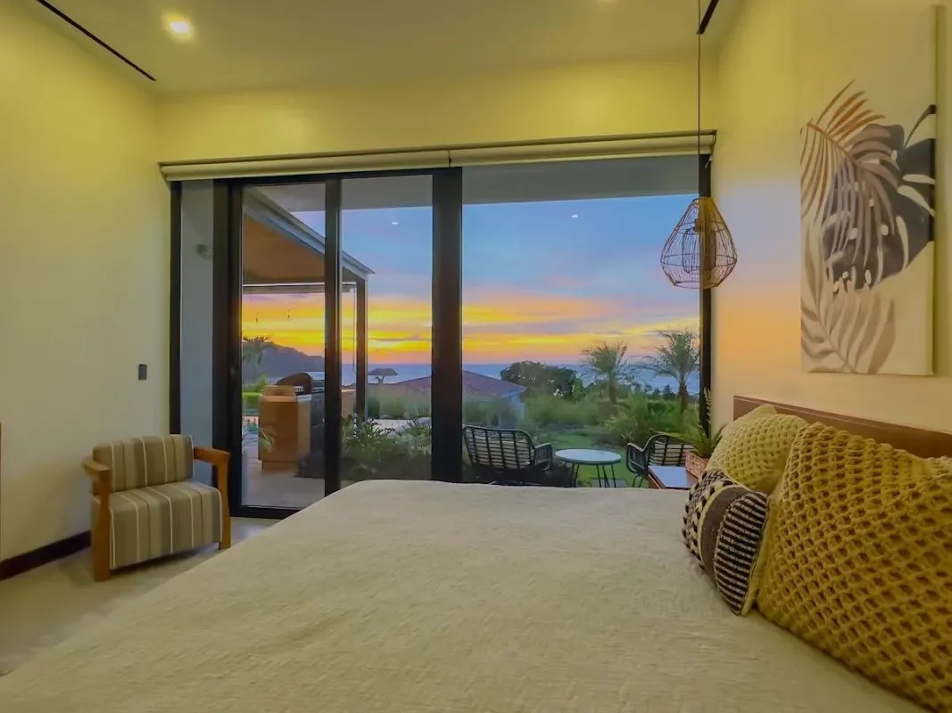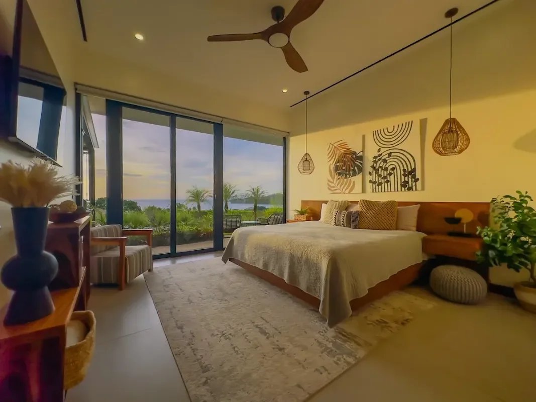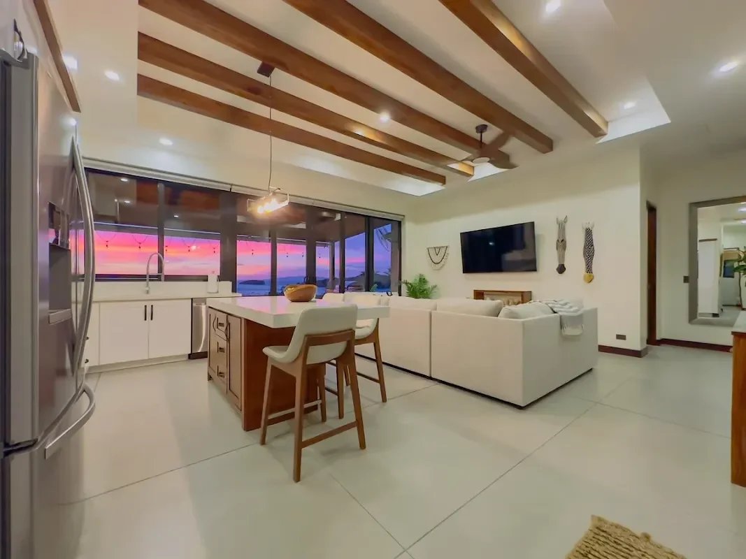 ✨ VILLA VUE OCÉAN EN RÉSIDENCE PACIFICO — PLAYAS DEL COCO, GUANACASTE, COSTA RICA — À Playas del Coco, dans la province du Guanacaste, cette villa de plain-pied achevée en 2022 incarne un art de vivre où raffinement et nature se conjuguent avec harmonie. Dès l’entrée, l’espace s’ouvre sur un salon lumineux aux plafonds à poutres apparentes décoratives, dont le regard est irrésistiblement attiré vers la terrasse, le jardin tropical et la piscine privée, illuminés chaque soir par des couchers de soleil spectaculaires sur le Pacifique.