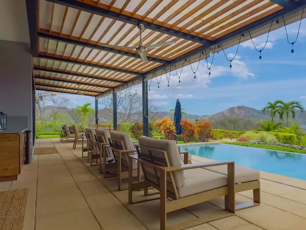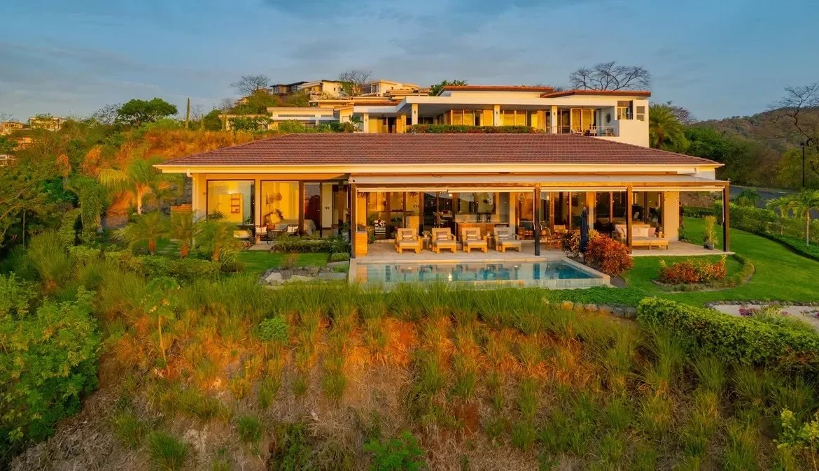 Villa de prestige à Playas del Coco, Guanacaste, Costa Rica. 280 m², 3 chambres, piscine privée, vue océan, résidence sécurisée Pacifico. À 30 min de l’aéroport de Liberia.