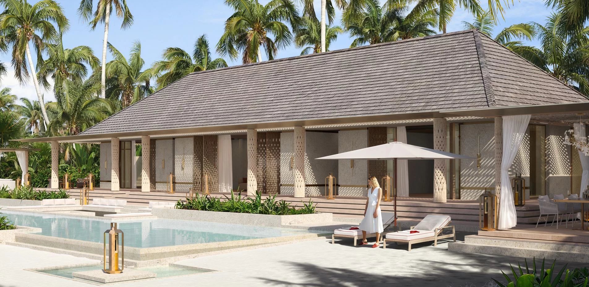 Au-delà de la villa elle-même, ce programme prestigieux offre une immersion complète dans un cadre unique de luxe, de bien-être et de gastronomie. Le resort s’étend sur plusieurs îles interconnectées, offrant un cadre intime et préservé pour ses résidents. Chaque espace est pensé pour maximiser l’expérience sensorielle, de la lumière naturelle aux perspectives sur l’océan, en passant par les jardins luxuriants et les chemins bordés de sable blanc qui relient les villas aux différentes installations.